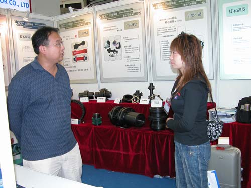 十多年來, 為客戶解決傳動問題成了沈陽三環(huán)的日常工作。 豐富的制造經(jīng)驗(yàn)、雄厚的技術(shù)力量、高度團(tuán)結(jié)的工作隊(duì)伍,使該廠可為客戶提供測繪、設(shè)計(jì)、制造、開發(fā)等一系列完備的技術(shù)服務(wù)。展臺上陳列了一系列的產(chǎn)品:膜片聯(lián)軸器、鼓形齒聯(lián)軸器、 齒式聯(lián)軸器、彈性套柱銷聯(lián)軸器、 脹緊聯(lián)接套(包括鎖緊盤)等等,另外還陳列了該廠自行開發(fā)研制的意境申請專利的對輪型膜片聯(lián)軸器等其它形式的聯(lián)軸器。記者為了留下這難得的資料,把這些產(chǎn)品都一一的攝入鏡頭。