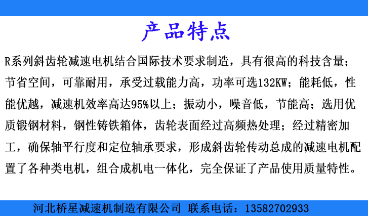 1、R系列斜齒輪減速電機結合國際技術要求制造,具有很高的科技含量
