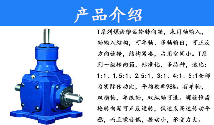 T系列螺旋錐齒輪轉(zhuǎn)向箱速比1.5:1、2.5:1、3:1、4:1、5:1