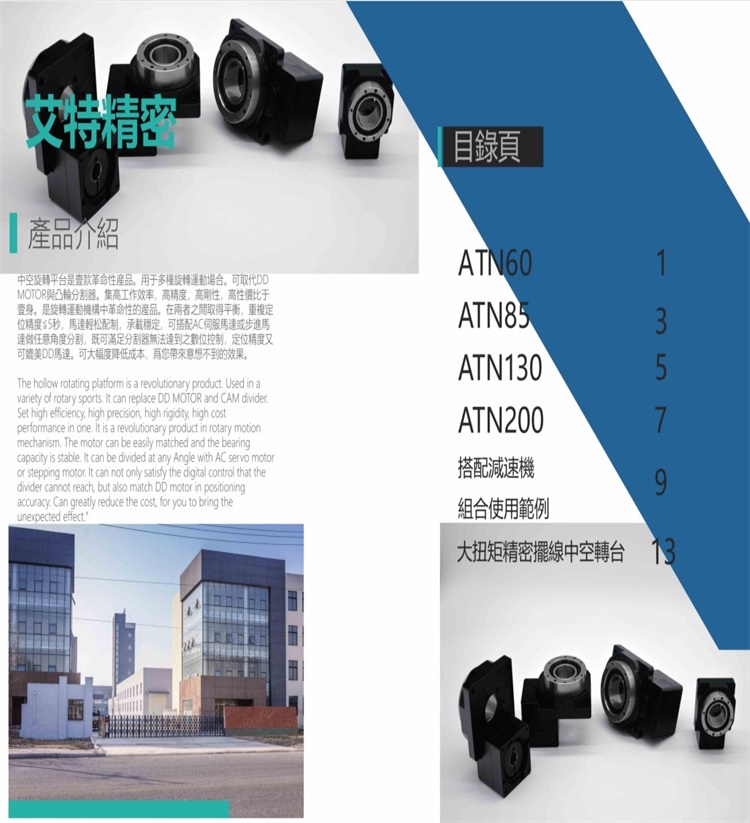 使用高剛性的交叉斜角滾子軸承與旋轉(zhuǎn)平臺面呈現(xiàn)一體化的設(shè)計,可承受大慣性的圓盤裝置,整組搭配步進馬達及驅(qū)動器。