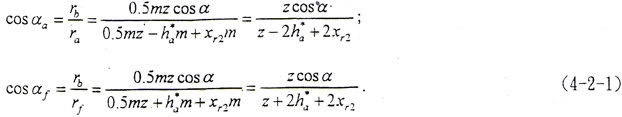(4-1-9)式中,φ1、φ2為二齒面的轉(zhuǎn)角,令φ1=φ2=φ,將(4-1-2)式及由(4-1-8)式解出的t2代入(4-1-9)式,即可得到以ψ2、φ為參變量的外齒輪齒面方程。