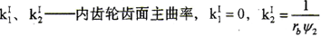 經(jīng)求解得到內(nèi)齒輪齒面的兩個法曲率主值為