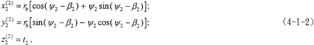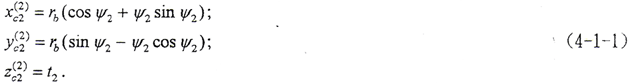 內(nèi)齒輪為直齒,其端面齒形及坐標關(guān)系如圖3-3所示。設端面齒廓線為漸開線,xc2坐標通過漸開線在基圓上的起點,(o,xc2,yc2,zc2)坐標下的齒面方程為