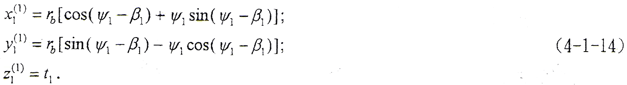 設中截面齒廓為漸開線,xc1坐標軸線通過漸開線在基圓上的起點,(o,xc1,yc1,zc1)坐標下的齒面方程為