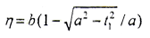 △的計算如下,設鼓形齒鼓度曲線為一橢圓,參數(shù)為長半軸a,短半軸b,當a=b時為圓弧。在鼓度曲線上建立局部坐標系(o′,ξ,η),o′為齒寬中線與分度圓線交點,ξ與z1方向相同,η為指向齒輪軸線的方向。在此坐標系上橢圓方程為
