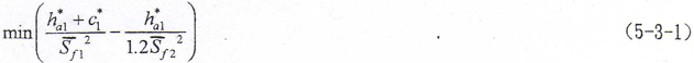 由目標函數(shù)(5-3-1)式及約束條件(5-3-2)式便構(gòu)成本問題的優(yōu)化數(shù)學模型。通過對優(yōu)化數(shù)學模型的求解,可以計算出不同齒模數(shù)及相應(yīng)的鼓度半徑下的優(yōu)化齒頂高系數(shù)值。表5-2給出了幾種不同輸入?yún)?shù)下的求解值,從表中數(shù)據(jù)可以看出,不同齒數(shù)及鼓度半徑,其優(yōu)化齒頂高系數(shù)不同,但都不超過0.7。考慮到齒頂高系數(shù)的統(tǒng)一,建議采用齒頂高系數(shù)為0.7是適宜的。值得指出的是,這種齒頂高系數(shù)的齒輪是采用標準齒頂高系數(shù)滾刀和插齒刀用特殊方法進行加工的。